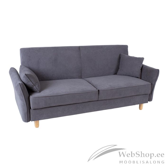Diivanvoodi ROSANNA pesukastiga, hall. Diivani kattematerjal: 100% polüestersamet. Karkass: puit, vineer. Polsterdus: polüuretaanvaht. Diivanil on lihtne click-clack mehhanism. Istme all on panipaik. Diivani üldmõõdud on 195x84xH88cm, istme laius 165cm, istme sügavus 52cm, istme kõrgus 46cm. Käetoe kõrgus maast 59cm. Diivanil on heledad puidust jalad H12cm. Magamisosa mõõdud avatuna on 165x105xH46cm. Kandevõime 300kg.
