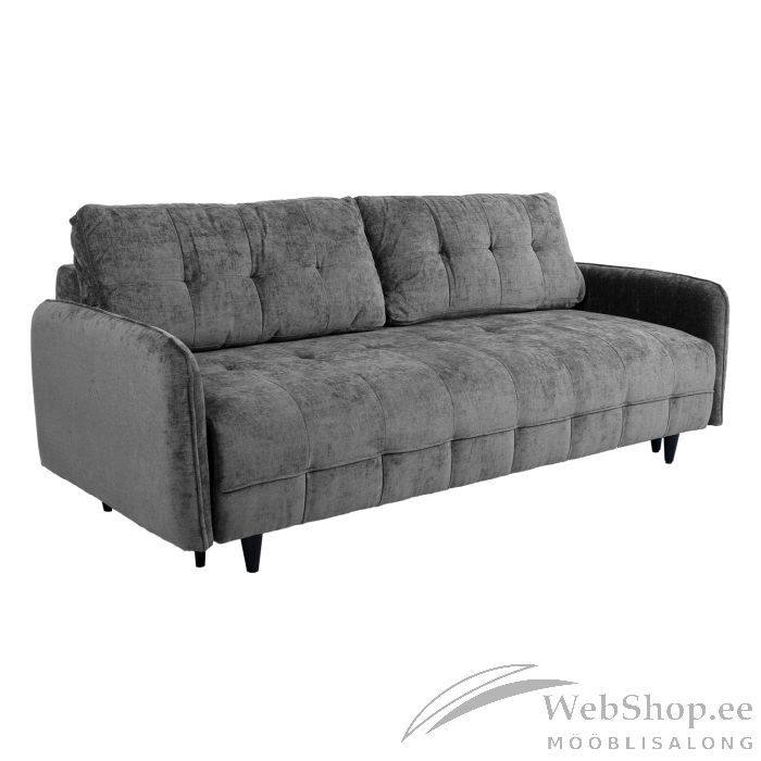 Diivanvoodi SARITA pesukastiga, hall. Lahtikäiv diivan on hea lahendus lisamagamiskoha loomiseks. Diivani avamiseks tõstke lahtised seljatoepadjad kõrvale, tõmmake istmeosa ette välja ja lükake madal seljatugi alla. Diivan on kaetud polüester kangaga. Karkass on valmistatud täispuidust. Istmepõhi on toestatud sik-sak vedrude ja rihmadega. Polsterduseks on kasutatud polüuretaanvahtu 23kg/m³. Lahtised seljatoepadjad on täidetud polüesterkiuga. Diivani üldmõõdud on 212x94xH85cm. Istme laius 189cm, istme sügavus 58cm, istme kõrgus 44cm. Käetoe kõrgus maast 62cm. Magamisosa mõõdud avatuna on 189x136xH44cm. Diivanil on puidust jalad H12cm.