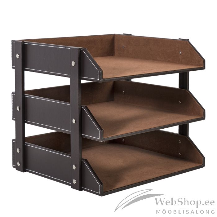 Dokumendi riiulid WALTER 28x35xH27cm, pruun. Dokumendi riiulid on valmistatud pruuni värvi kunstnahast. Toote mõõdud on 28x35xH27cm.