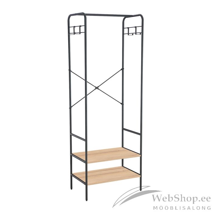 Esikuriiul HANNES 64x40xH180cm, rustik melamiin. Materjal: rustikaalse dekooriga melamiinplaat. Raam on valmistatud metallist ja viimistletud musta pulbervärviga.