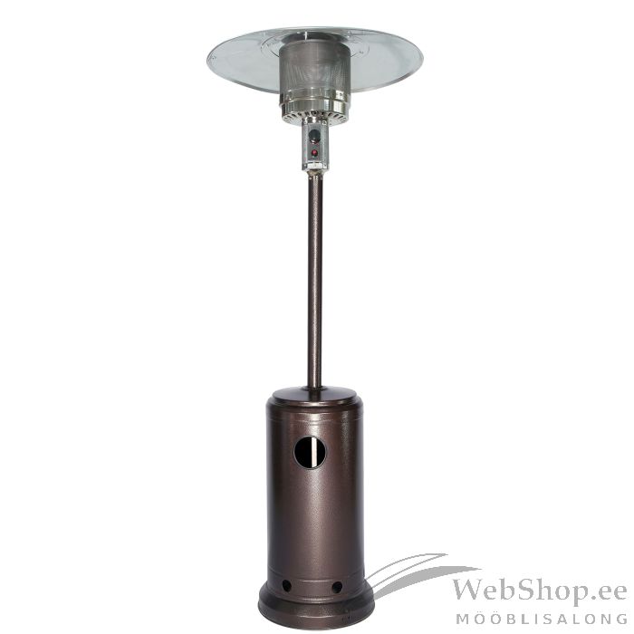 Gaasisoojendi ROCKET H221cm. Dekoratiivne gaasisisoojendi annab sooja, loob hubase meeleolu ja võimaldab ka jahedatel päevadel õues olemist pikemalt nautida. Gaasisoojendi sobib kasutamiseks koduterrassil, restoranis või kohvikus. Terrassisoojendit on lihtne kasutada, sellel on elektriline (patareiga) süütamine ja mugav leegi reguleerimine. Korpuse ühel küljel on rattad, mis võimaldavad soojendit vajadusel mugavalt ja turvaliselt teisaldada. Ümberkukkumisandur kustutab leegi automaatselt, kui kaldenurk ületab 45°. Automaatne väljalülitussüsteem peatab gaasivarustuse koheselt, kui tuvastatakse leegi sumbumine või gaasileke. Gaasisoojendi korpus on valmistatud terasest ja viimistletud pruuni pulbervärviga. Korpuse mõõdud on D46xH75cm, reflektori diameeter 82cm. Maksimaalne küttevõimsus 13kW. Soojendatav ala 10-16m². Gaasikulu: 945g/h. Sobiv gaas: propaan, butaan või LPG. Gaasiregulaator ei kuulu komplekti, see on saadaval eraldi koodiga TA329142.