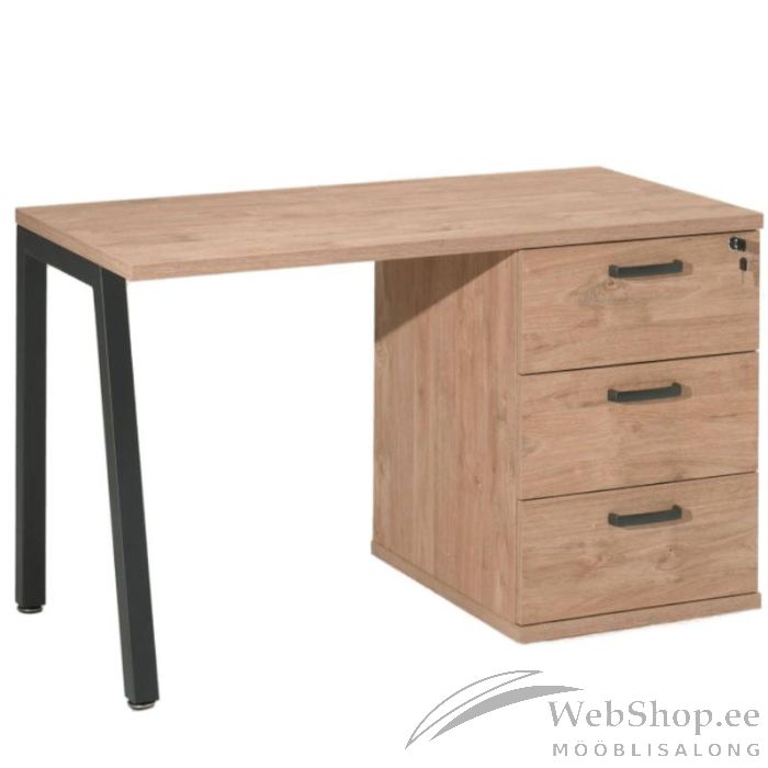 Laud on valmistatud kuldse tamme imitatsiooniga mööbliplaadist. Kaks jalga mustast metallist. Kolm sahtlit liiguvad metallsiinidel, kõige üleine on ka lukustatav. Käepidemed värvitud. Lauda saab monteerida kokku ka peegelpildis.