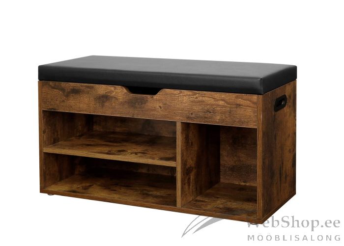 Mööbliplaadist valmistatud jalanõuderiiulil on üks vaheriiul, kunstnahaga kaetud pehme iste ning istme all panipaik väiksemata asjade hoiustamiseks. Külgedel on käepidemed riiuli mugavamaks liigutamiseks. Maksimaalne kandevõime on 150 kg. Värvus: pruun/must.