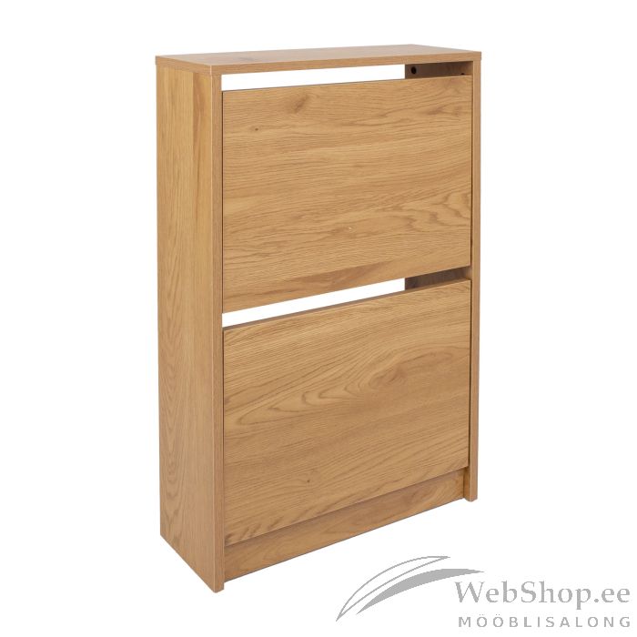 Jalatsikapp AALBORG 49x18xH84cm, melamiin tammedekooriga. Kapil on kaks sahtlit jalanõude paigutamiseks. Kapp on valmistatud melamiinplaadist.