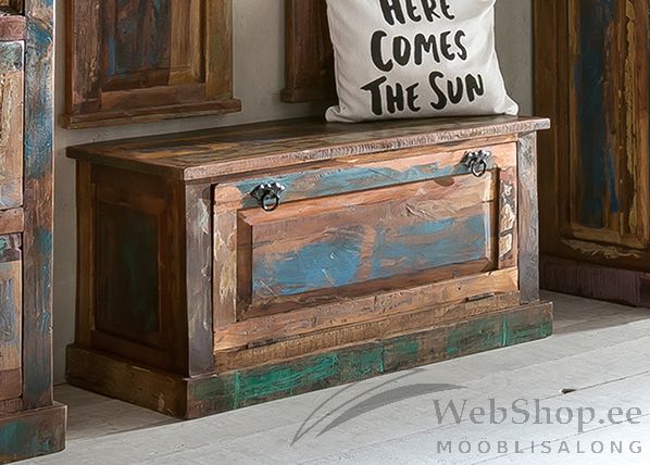 Taaskasutatud puidust jalatsikapp. Viimistlus: mitmevärviline. 1 uks. Ukse taga 1 riiul. toode on käsitsi valmistatud ning isikupärastab iga kodu.