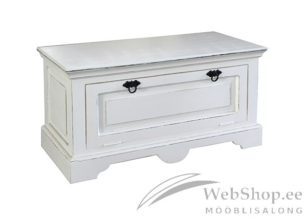 Mangopuidust ja MDF-mööbliplaadist valmistatud jalatsikapp. Viimistlus: antiikvalge. 1 uks, mille taga 1 riiul. Taotuslikult tehtud kulumisjäljed.