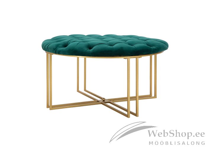 Stiilne rohelise värvi sameti kattega järi. Kulla tooni metallist jalad. Pehmenduseks on kasutatud porolooni.