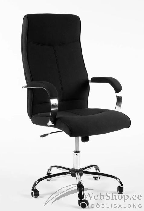 Mugav musta kangaga kaetud ratastel kontoritool.