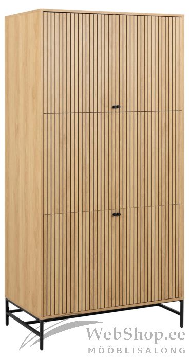 Kapp köidab tähelepanu tänu oma suurepärasele disainile. Kapis on piisavalt palju hoiuruumi. Kergesti hooldatav pind. Riidekapp on valmistatud tamme melamiinist. Alus on valmistatud mattmustast pulbervärvitud terasest. Mõõdud 99x60xH200cm.