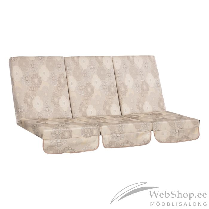 Kiigepadjad MONTREAL 114x52x9cm, 3tk, beežid ringid, kangas 110, 100% polüester. Sobib kiigeraamidele MONTREAL, CAIRO. Ühe padja mõõdud: laius 52cm, pikkus 114cm, paksus 9cm. Komplektis 3tk.