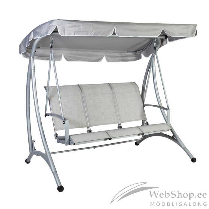 Kiik MAIRY hall. Aiakiik pakub meeldiva võimaluse värskes õhus viibimiseks ja pikkade õhtute nautimiseks õues. Kolmekohalise kiige iste on kaetud textiline materjaliga, mis on vastupidav ja kergesti puhastatav. Kiige katus on polüesterkangast ning raam terasest. Kiige mõõdud on 193x114xH171cm ja kaalupiirang on 240kg. HOIATUS: toode pole mõeldud kasutamiseks tugeva tuule ja vihma korral.