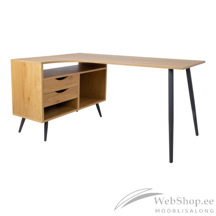 Kirjutuslaud GEORGIA 145x80xH75cm, melamiin tammedekooriga. Laud on valmistatud melamiinkattega mööbliplaadist. Lauajalad on valmistatudmetallist ja viimistletud musta pulbervärviga. Lauaplaadi all on kaks sahtlit ja kolme erinevas mõõdus avatud riiulivahet. Sahtlite siinid on vaikselt sulguvad. Lühemate jalgade kõrgus on 20cm.