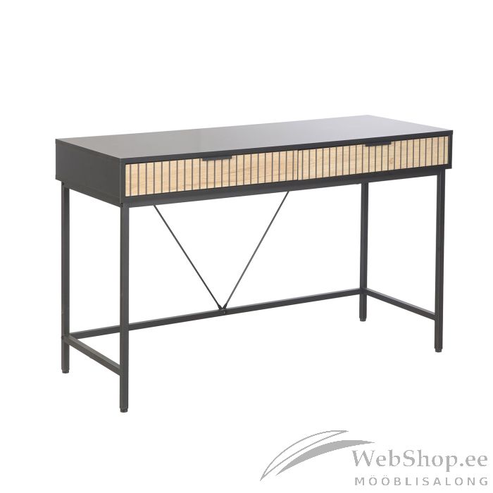 Kirjutuslaud HELVE 2-sahtliga 120x48xH76cm. Materjal: melamiinplaat. Värvus: must / hele puit. Jalad ja raam on valmistatud metallist ja viimistletud musta pulbervärviga.
