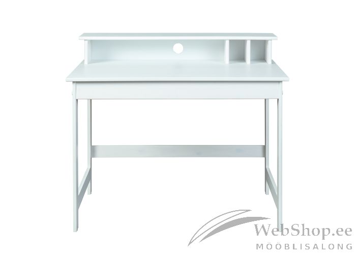 Naturaalsest männipuidust kirjutuslaud. Lauaplaat on MDF-mööbliplaadist. Viimistlus: valge.