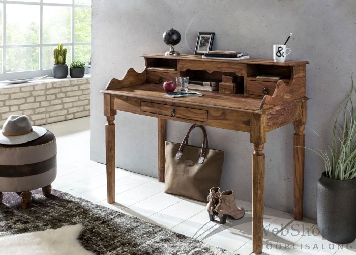 Naturaalsest viimistlemata India roosipuust kirjutuslaud. Laual on 3 sahtlit. Sahtlid liiguvad avas siinideta. Iga toode on originaalne ja võib erineda pildil olevast, sest on naturaalsest puidust.