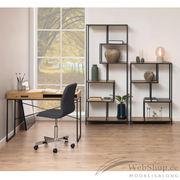 Kirjutuslaud SEAFORD 110x45xH75cm, tamm. Kirjutuslaud on vajalik täiendus igas kodus, võimaldades mugavamalt arvutit kasutada või endale praktiline kodukontori ruum luua. Puidutoonis kirjutuslauad on ideaalsed kasutamiseks koduses miljöös, kuna soe materjal ja mahedad toonid sobivad hästi erineva sisustusega. Kirjutuslaual on sahtel. Lauaplaat on valmistatud MDF-ist ja melamiinist. Värvus on metsik tamm. Raam on valmistatud musta värvi metallist. Toote mõõdud on 110x45xH75cm.