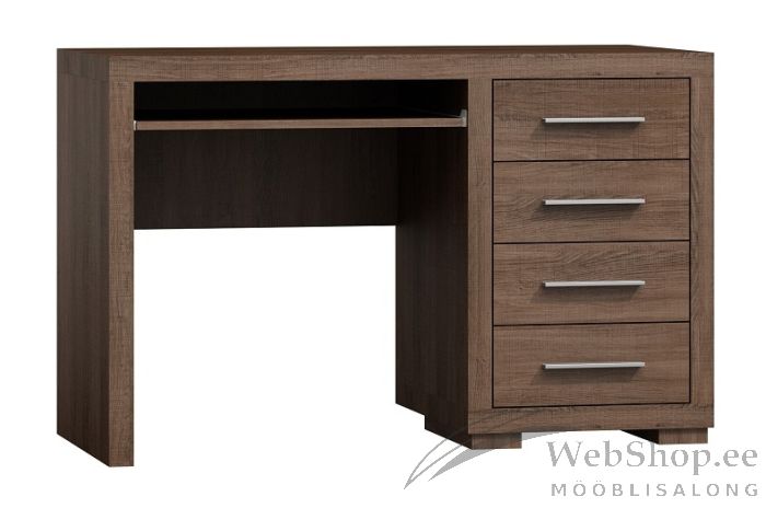 Vastupidavast melamiinkattega laminaadist valmistatud arvutilaual on 4 sahtliga kapiosa ja väljatõmmatav klaviatuurialus. Sahtlitel on stiilsed metallist käepidemed.