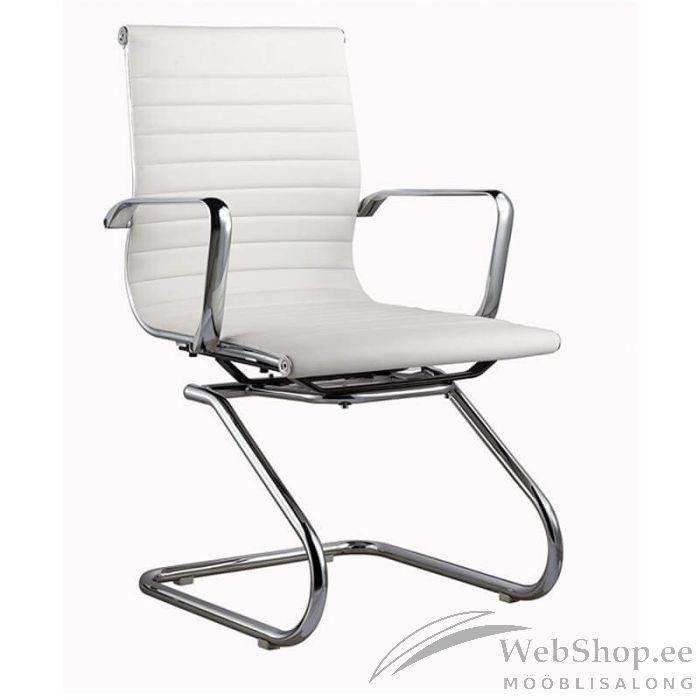 Mugav kaasaegse disainiga klienditool, mille käetoed ning jalad on valmistatud vastupidavast kroomitud metallist, tooliraam terasest. Iste ja seljatugi on kaetud valge kunstnahaga. Istumiskõrgus ning istumissügavus 47 cm. Käetugede kõrgus maapinnast 68 cm. Ei saa kasutada vaipkattega põrandal.