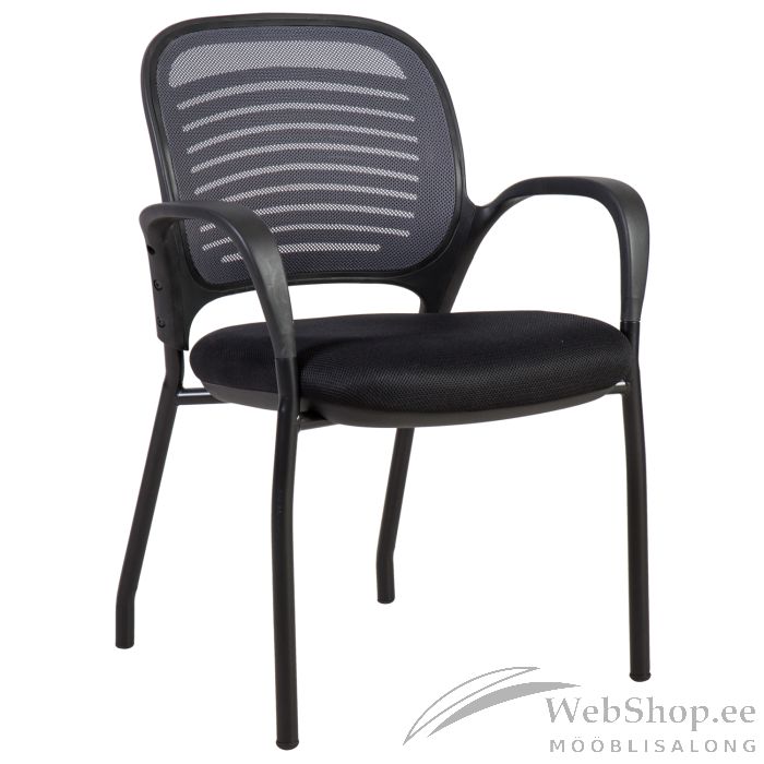 Klienditool TORINO hall/must. Iste on kaetud musta polüestervõrkkangaga, 30 000 Martindale’i. Seljatugi on kaetud halli polüestervõrkkangaga. Käetoed on valmistatud plastikust. Raami värvus on must. Toolid on virnastatavad, mis muudab nende hoiustamise hõlpsamaks. Mõõtmed: kõrgus 84cm, istme kõrgus 46cm, istme sügavus 48cm, istme laius 48cm. Toote mõõdud on 59x59xH84cm.