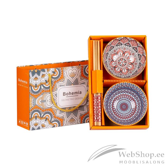 Arvustatav toode:Komplekt BOHEMIA 2-kaussi ja söögipulgad, värviline