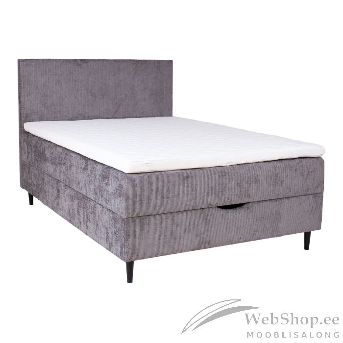 Voodi kattemadrats on poroloonist ja selle paksus on 7cm. Kattemadratsi all asub pocket-vedrustusega madrats. 210vedru/m2, vedru kõrgus 13cm. Madratsi jäikus: keskmine. Voodi raam on valmistatud puidust, puitlaast- ja puitkiudplaadist. Voodi all asub ruumikas panipaik. Voodijalad on valmistatud puidust, 14cm kõrged. Voodipeats on voodiga sama lai, selle paksus on 7cm, kõrgus 105cm. Ühenduselemendid on lisatud. Voodi on kaetud kangaga, 90 000 Martindale´i. Voodi kõrgus maast on 70cm. Toote mõõdud on 141x208xH119cm. Toode on valmistatud EL-is.