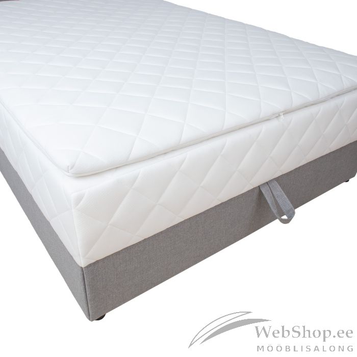 Kontinentaalvoodi LEVI 140x200cm, madratsiga, hall. Voodil on pocket-vedrustusega madrats, 210 vedru/m2. Vedrude kõrgus on 13cm. Vedrusid katab 23kg/m3 poroloonikiht, mis on 2cm paks. Madratsi jäikus: jäik. Kattemadratsi sisuks on 23kg/m3 poroloon. Kattemadrats on kaetud 200g/m2 polüestervatiiniga. Voodi all on mahukas panipaik, mis on valmistatud täispuidust ja lamineeritud puitlaastplaadist. Selle küljed on kaetud porolooniga. Voodi karkass on valmistatud täispuidust. Voodiraam on kaetud kangaga, Martindale 49 000. Komplekti kuulub voodipeats, mis on voodiga sama lai. Peatsi paksus on 7cm. Kaasas on ühenduselemendid peatsi kinnitamiseks voodi külge. Voodil on neli plastikust jalga, mis on musta värvi. Toode on valmistatud EL-is.
