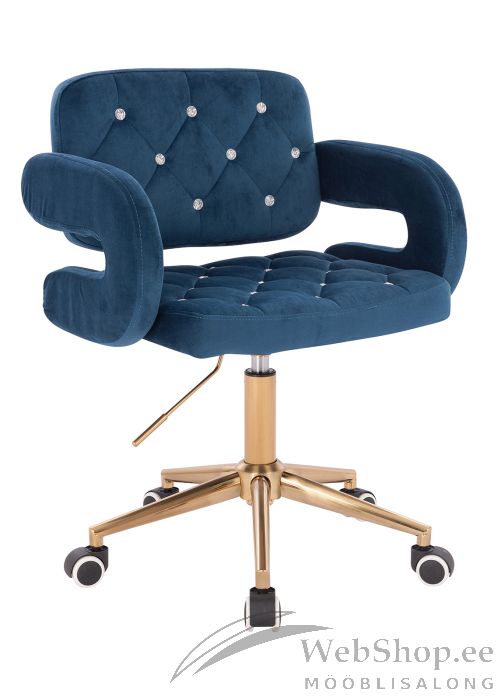* Kontoritool on kaetud sinise sametise kangaga, pehmenduseks poroloon