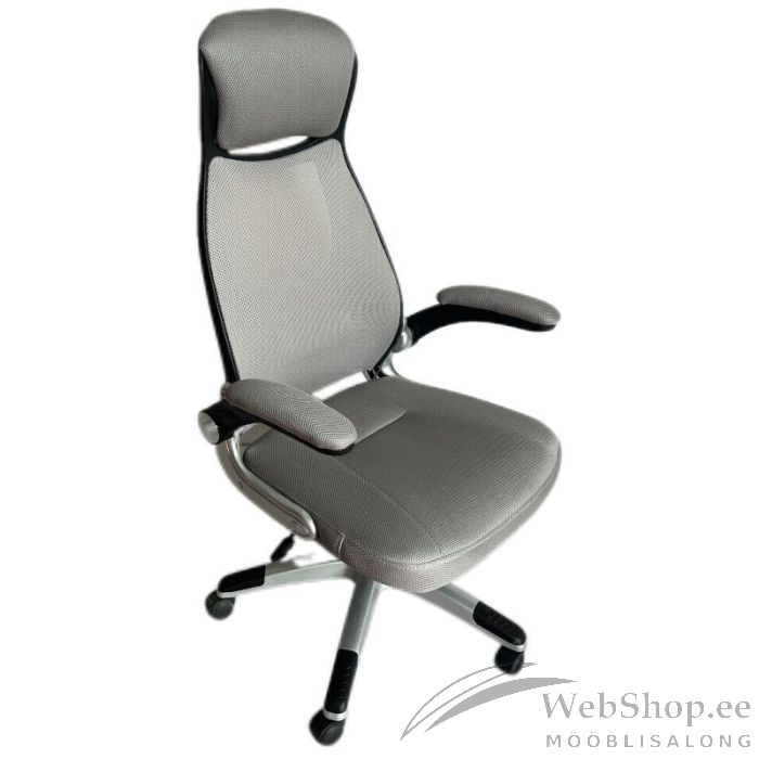 Mugav töötool on kaetud musta võrkkangaga jalarist ja käetoed plastikust, plastikrattad istumiskõrgus on reguleeritav gaaspumpmehhanismiga kiikemehhanism tooli kõrgus: 116-126cm istumiskõrgus: 44-56cm istme laius: 63,5cm maksimaalne kandevõime: 120 kg