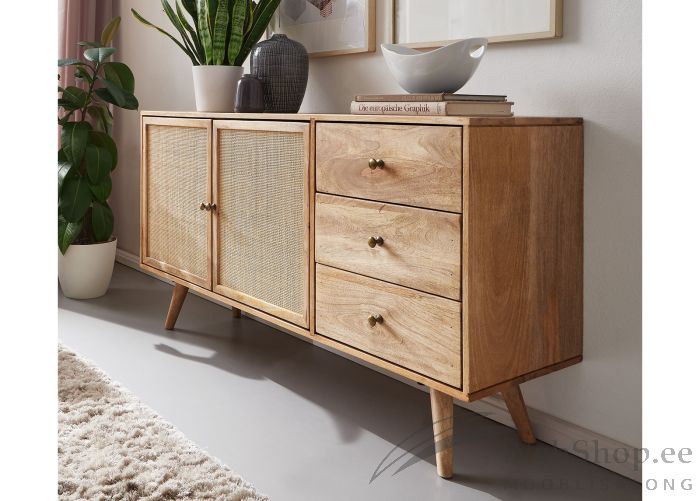 Akaatsiapuidust maastiilis kummut. Viimistlus: lakitud. 3 siinideta sahtlit ja 2 ust. Uste taga on 1 riiul. Kummut on valmistatud käsitööna. Iga toode on originaalne ja võib erineda pildil olevast, sest on naturaalsest puidust.