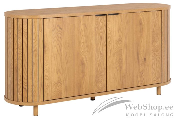 Selged jooned, vertikaalsed liistud ja rustikaalne metsiku tamme välimus muudavad kapi ideaalseks täienduseks igasse interjööri. Kahe ukse taga on riiulitega praktiline panipaik. Materjal: MDF. Jalad: teras. Toote mõõdud on 160x45xH80cm.