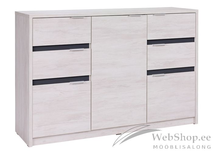 Tänapäevase moodsa disainiga kvaliteetsest lamineeritud plaadist valmistatud kummut. Kummutil on neli sahtlit, kaks väiksemat ja üks suurem kapiosa. võimalik tellida kolme eri värvi.