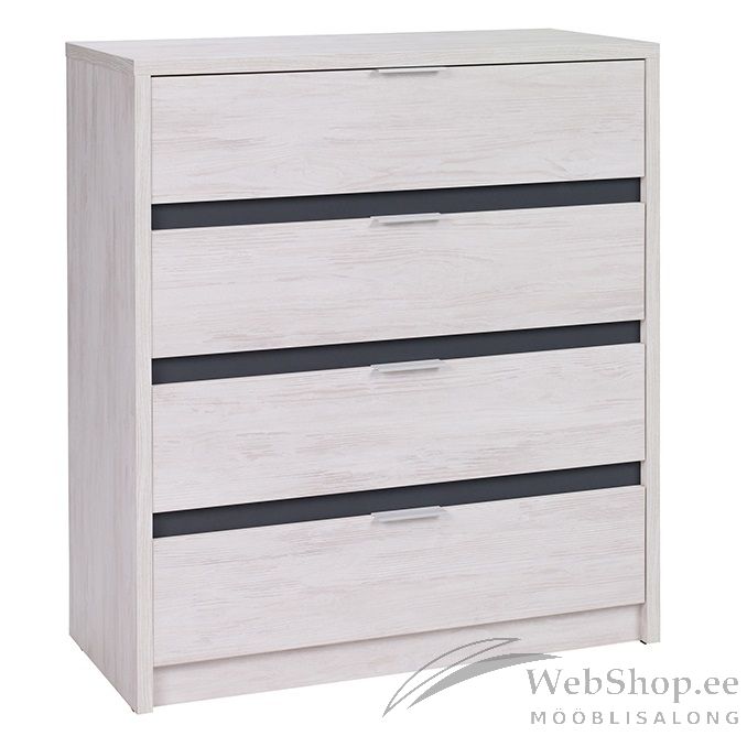 Tänapäevase moodsa disainiga kvaliteetsest lamineeritud plaadist valmistatud kummut. Kummutil on neli mahukat sahtlit. võimalik tellida kolme eri värvi.