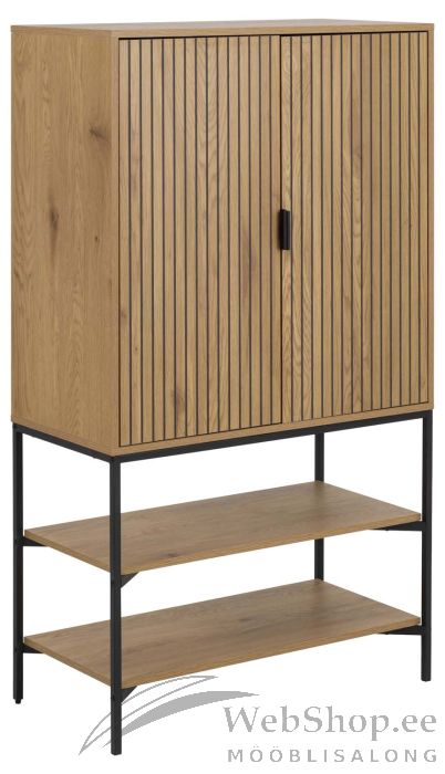 Vaatamata minimalistlikule välimusele on kummut muljetavaldava disainiga. Tamme välimus ja mustad teraselemendid toovad igasse koju kaasaegse ilme. Kummutil on 2 ust ja riiulid, mis pakuvad mugavat hoiuruumi. Elegantsed käepidemed on pulbervärvitud metallist. Kummutil on peen pulbervärvitud metallist alus. Kapi pinnad on kergesti puhastatavad. Mõõdud 80x40xH140cm.