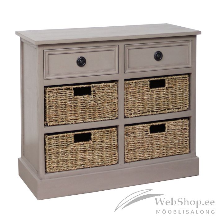 Kummuti põhikonstruktsioon ja sokkel on valmistatud männipuidust. Pealmine lauaplaat ja sahtel on värvitud MDF. Kummut on viimistletud värviga. Punutud sahtlid on valmistatud mererohust. Ülemistel sahtlitel on metallist käepidemed.