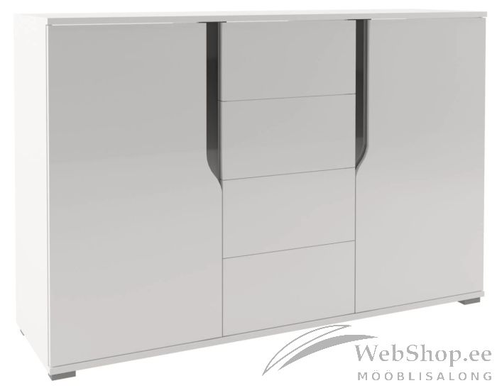 Kvaliteetsest lamineeritud plaadist valmistatud universaalne kummut. Keskel on neli sahtlit ja külgedel uksega kapiosad. Kummutid saadaval kahte värvi kahe eri värvi dekoratiiv liistuga.