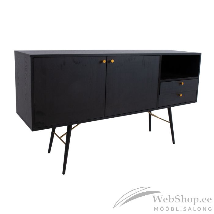 Materjal: melamiinplaat, värvus: must. Vase värvi metallist alusraam. Vaikselt sulguvad hinged ja sahtlisiinid. Vase värvi alumiiniumust käepidemed.