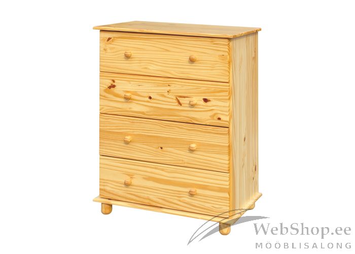 Naturaalsest männipuidust kummut. Viimistlus: naturaalne. Kummutil on 4 metallist siinidel sahtlit.