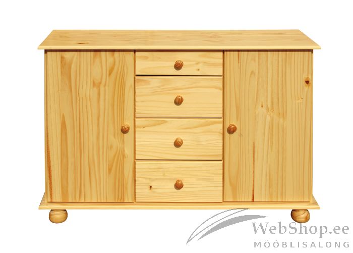Naturaalsest männipuidust kummut. Viimistlus: naturaalne. Kummutil on 4 metallist siinidel sahtlit. Kaks ust, kummagi taga on üks riiul.
