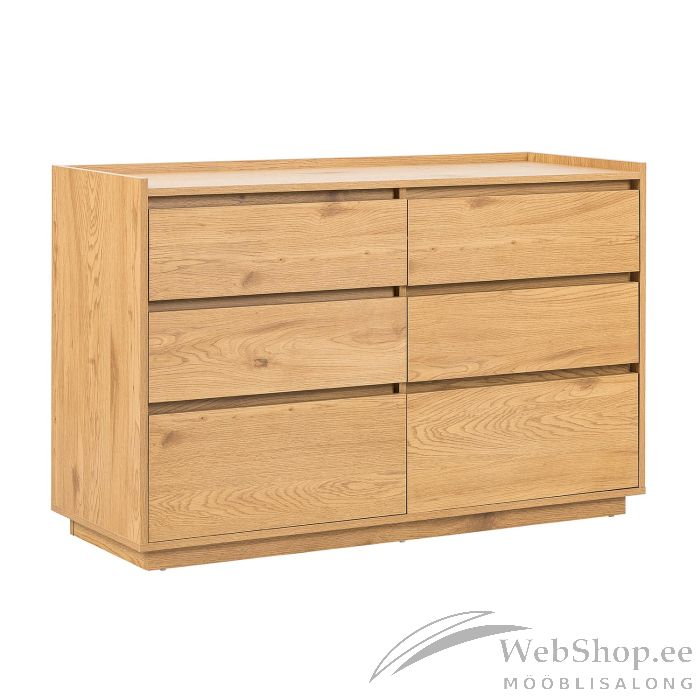 Kummut SACHA 6-sahtliga 120x40xH80cm, tammedekooriga melamiin. Kummut on valmistatud melamiinkattega mööbliplaadist. Sahtlid liiguvad metallsiinidel.