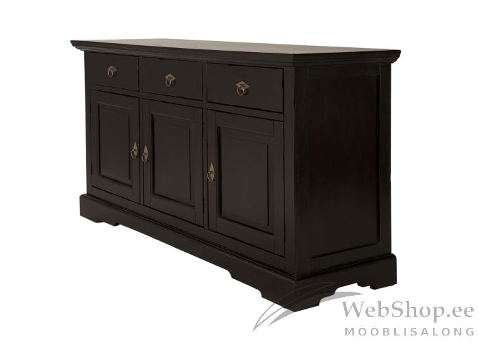 Akaatsiapuidus valmistatud kummut. Viimistlus: antiik. 3 ust, 3 sahtlit. Sahtlid liiguvad avas siinideta. Uste taga 1 riiul.