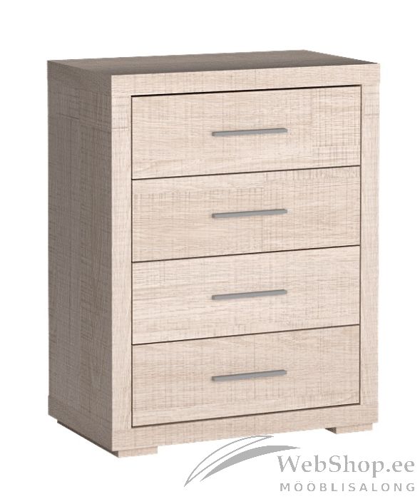 Vastupidavast melamiinkattega laminaadist valmistatud kummutil on 4 mahukat sahtlit. Sahtlitel on stiilsed metallist käepidemed.