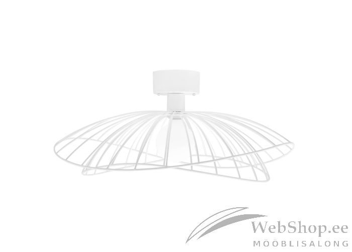 Valget värvi metallist lae-/seinalamp. Lambile sobib elektripirn max 60W, sokliga E27. Valgusallikas ei kuulu komplekti. Tekstiilist kaabel (200cm). Konkskinnitus. Skandinaavia disain.