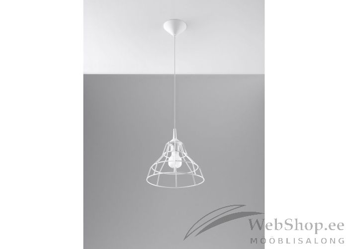 Stiilne metallist laelamp. Viimistlus: valge. Lambile sobib elektripirn max 60W, sokliga E27. Valgusallikas ei kuulu komplekti.