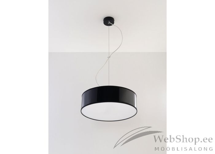 Stiilne musta värvi PVC materjalist laelamp. Lambile sobivad elektripirnid 2x max 60W, sokliga E27. Valgusallikad ei kuulu komplekti.