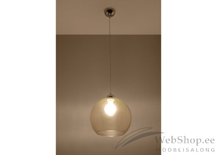 Stiilne klaasist kupliga laelamp. Viimistlus: šampanja. Lambile sobib elektripirn max 60W, sokliga E27. Valgusallikas ei kuulu komplekti.