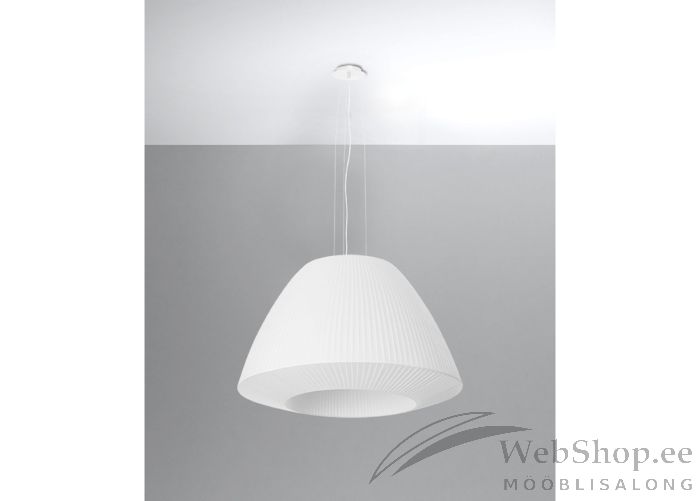 Stiilne valget värvi laelamp. Lambi valmistamisel on kasutatud tekstiili, klaasi ja metalli. Lambile sobivad elektripirnid 3x max 60W, sokliga E27. Valgusallikad ei kuulu komplekti.