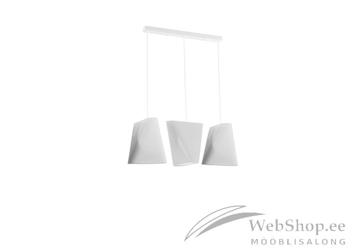 Modernse ja ministliku stiiliga valge laelamp. Kuppel on tekstiilist. Kupli raam on terasest. Sobivad elektripirnid 3xE27 60 W. Pinge 220 V. IP20. Valgusallikas ei kuulu komplekti.