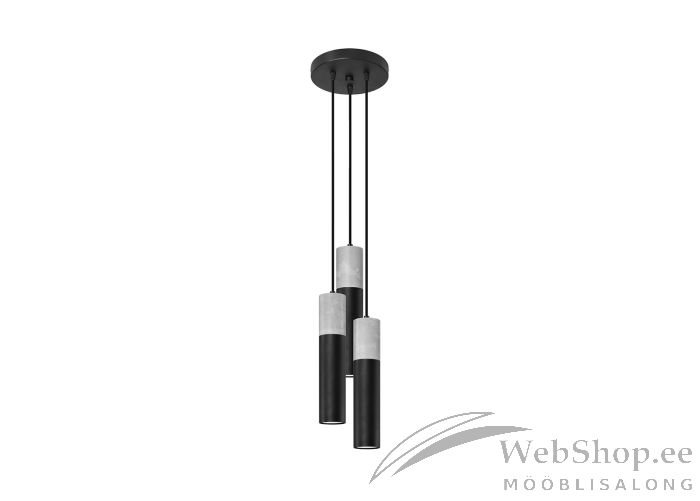 Kolme kupliga laelamp on valmistatud terasest, kergbetoonist detailid. Viimistlus: must/hall. Sobivad elektripirnid GU10 3x40W või 3x12W LED. Valgusallikad ei kuulu komplekti.