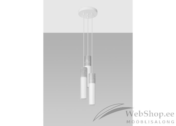 Kolme kupliga laelamp on valmistatud terasest, kergbetoonist detailid. Viimistlus: valge/hall. Sobivad elektripirnid GU10 3x40W või 3x12W LED. Valgusallikad ei kuulu komplekti.