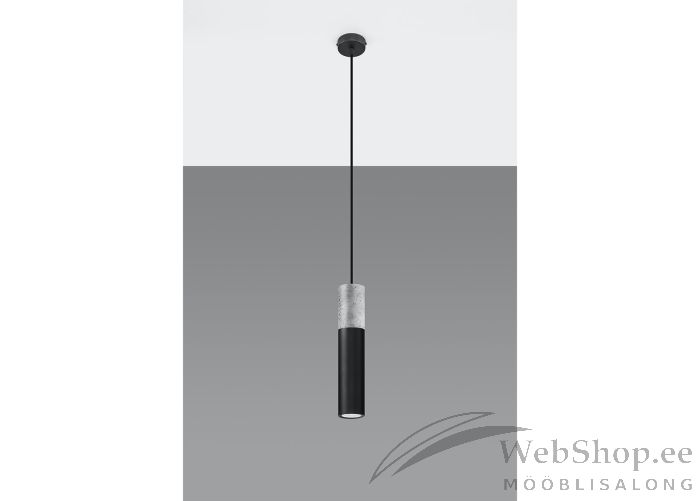 Stiilne metallist ja betoonist kupliga laelamp. Viimistlus: must/hall. Lambile sobib elektripirn max 40W, sokliga GU10. Valgusallikas ei kuulu komplekti.
